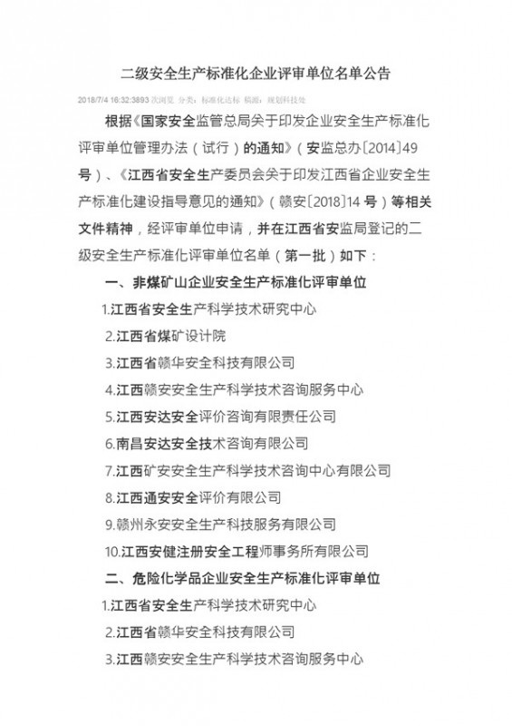 **安全評價機構、安全生產檢測檢驗機構名···